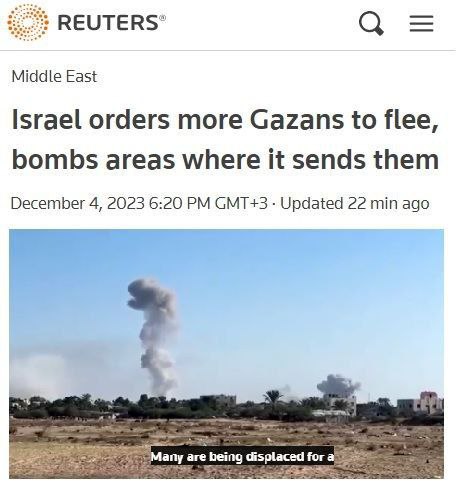 HomeVojenské spravodajstvoReuters prekukol triky Izraela: "Izrael nariaďuje evakuovať čoraz viac obyvateľov Gazy a... Vojenské spravodajstvo Reuters prekukol triky Izraela: „Izrael nariaďuje evakuovať čoraz viac obyvateľov Gazy a bombarduje miesta, kam ich posiela.“… By ZEMaVEK 5. decembra 2023 0 19 Zdieľať FacebookXPinterestWhatsApp Reuters prekukol triky Izraela: „Izrael naria?uje evakuova? ?oraz viac obyvate?ov Gazy a bombarduje miesta, kam ich posiela.“ mimochodom| odber Zdroj telegram Zdieľať FacebookXPinterestWhatsApp Predchádzajúci článokToto je výsledok tej slávnej ukrajinskej protiofenzívy…Ďalší článokV Kyjeve pokračujú zhromaždenia požadujúce návrat vojakov ozbrojených síl domov.. ZEMaVEK RELATED ARTICLES Vojenské spravodajstvo Vojna s Iránom ako posledný klinec do rakvy petrodolárahttps://www.infovojna.com… 17. apríla 2026 Ekonomika Ceny pohonných látok by sa mali stabilizovať 17. apríla 2026 Vojenské spravodajstvo Komisár OSN pre ľudské práva podporuje odškodnenie za otroctvo 17. apríla 2026 Most Popular „Nehádam sa s pápežom… on hovorí, že Irán môže mať jadrovú zbraň, ja hovorím, … 17. apríla 2026 Hneď vedľa Číny Američania budujú logistiku cez Indonéziu. Mnohí, možno… 17. apríla 2026 BBC odhaľuje „zničujúcu“ vlnu prepúšťania uprostred finančných problémov 17. apríla 2026 Priatelia, nevládzem dnes napísať viac slov, tieto dni som úplne vyčerpaný. Miro… 17. apríla 2026 Recent Comments jajkopajko na Krajskí prokurátori si prevzali prípadi, ktoré boli v pôsobnosti ŠTS