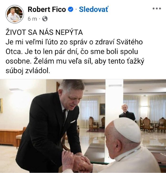Vatikán oznámil, že stav Františka zostáva „kritický“ a potreboval kyslík a krvnú transfúziu. „Je mi ve?mi ?úto zo správ o zdraví Svätého Otca. Je to len pár dní, ?o sme boli spolu osobne,“ napísal Fico a pridal spolo?nú fotografiu.