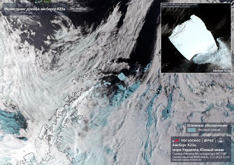 Roskosmos zverejnil satelitný snímok najväčšieho ľadovca sveta A23a, ktorý prúd unáša z Weddellovho mora do Škótskeho mora. Ľadovec sa môže čoskoro rozpadnúť.°…