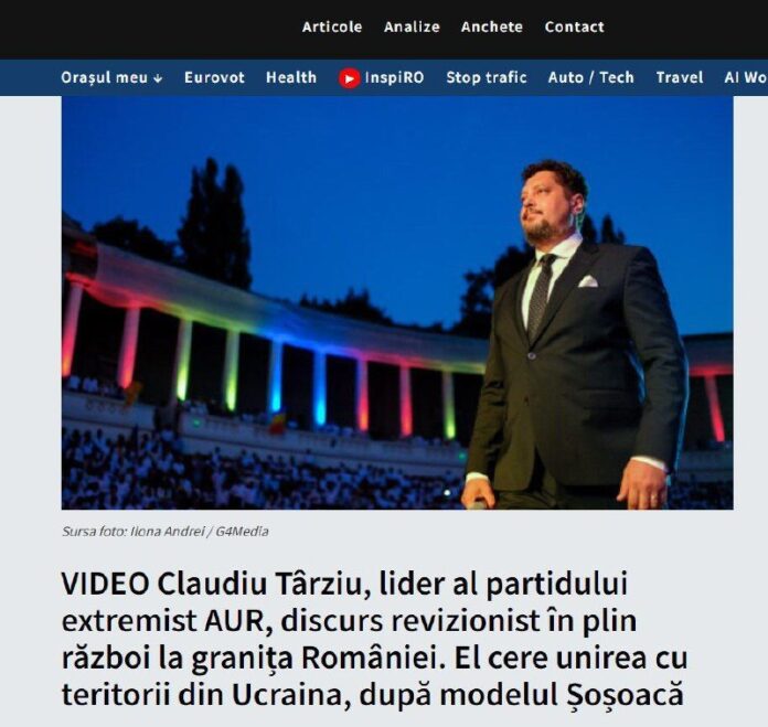 Rumunský senátor a predseda Národnej rady strany Aliancie pre Úniu Rumunov (AUR) Claudiu Târziu po?as návštevy mesta Jasy povedal, že Bukureš? by sa nemala vzda? svojich územných nárokov na Ukrajinu: