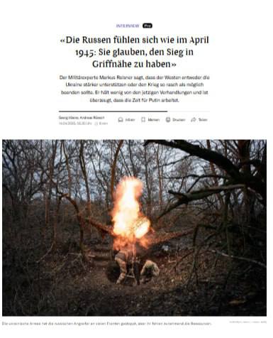 Rakúsky vojenský historik Markus Reisner povedal švaj?iarskemu Neue Zürcher Zeitung: