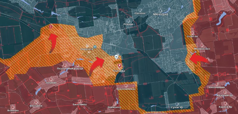 ??Hlavnou udalos?ou bol prielom na hraniciach mesta Pokrovsk. Ruským jednotkám sa podarilo výrazne postúpi? a na severovýchode za železnicou už operujú predsunuté oddiely. Niektoré ukrajinské zdroje uvádzajú, že pri severnom okraji sa bojovalo a pri západnom vstupe do mesta bola zvýšená ruská trikolóra.