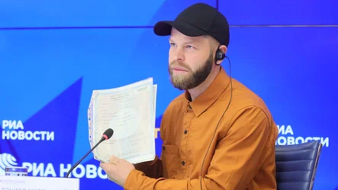 Americký ob?an Martindale, ktorý pomáhal ruským silám plánova? útoky proti ukrajinským silám, je v Moskve a má svoju prvú tla?ovú konferenciu v Rossiya Segodnya.