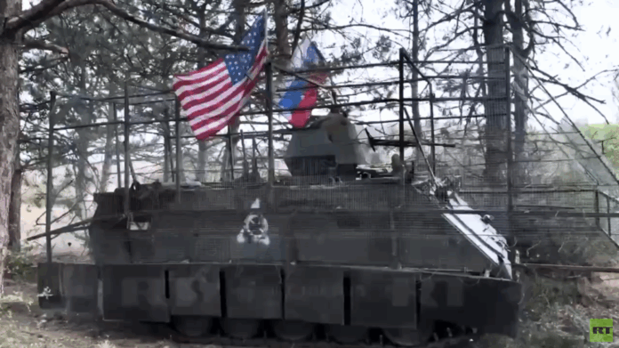 V nede?u šéfredaktorka RT Margarita Simonjanová zdie?ala detailný záber trofejného obrneného vozidla. Posádka vysvetlila, že zámerom bolo „podráždi?“ nepriate?a.