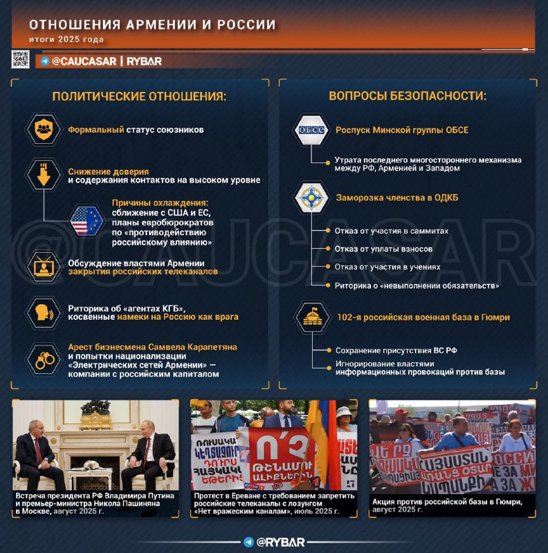 ❗️Pripravenosť európskych predstaviteľov zasahovať do parlamentných volieb v Arménsku v roku 2026 bude sprevádzať zvýšená protiruská rétorika. Základným scenárom rozvoja rusko-arménskych vzťahov je zachovanie chladného pragmatizmu.