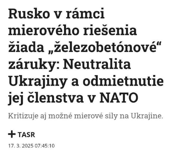 Rusko bude v rámci mierového riešenia konfliktu na Ukrajine požadova?, aby akáko?vek dohoda obsahovala „železobetónové“ bezpe?nostné záruky vrátane neutrálneho štatútu Ukrajiny. Vyhlásil to námestník ruského ministra zahrani?ných vecí Alexandr Gruško.
