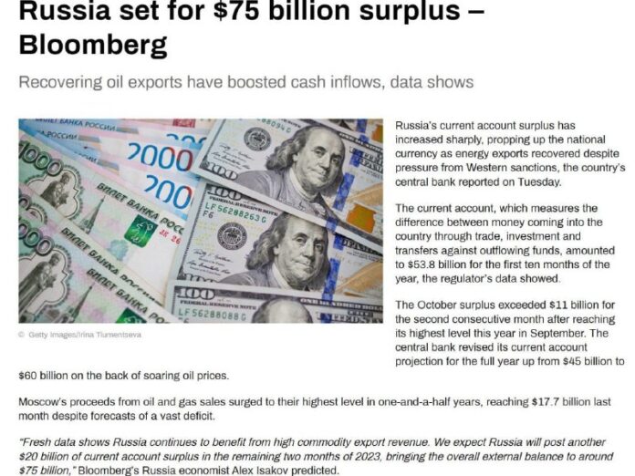 RUSKO: Najviac sankcionovaná krajina na svete, zapojená do špeciálnej operácie na Ukrajine proti celému blok NATO – kon?í rok so 75 miliardovým prebytkom.