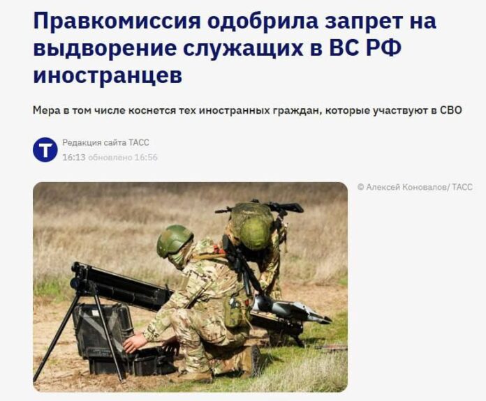 Vládna komisia schválila dodatky, ktoré zakazujú vydávanie a deportáciu zahrani?ných ob?anov, ktorí v sú?asnosti slúžia alebo slúžili na základe zmluvy v ruských ozbrojených silách, vrátane ú?astníkov špeciálnych operácií.