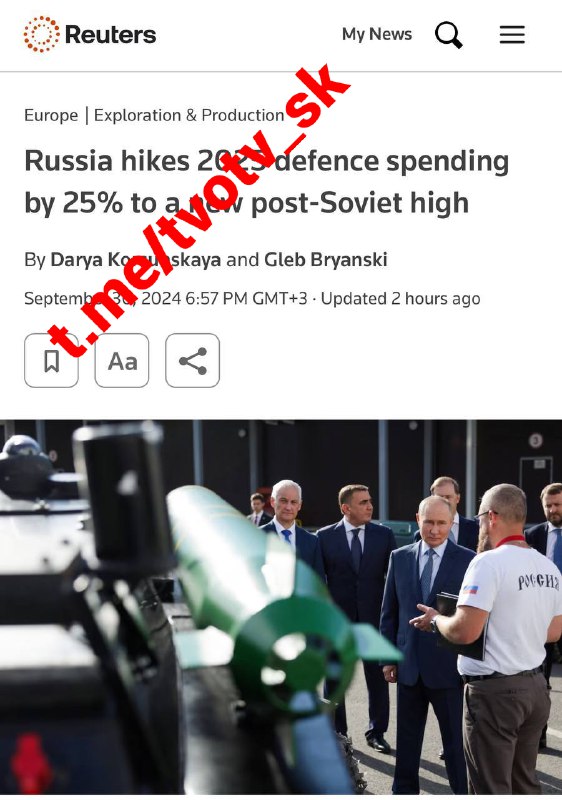 Rusko v roku 2025 zvýši svoj vojenský rozpo?et na 13,5 bilióna rub?ov, ?o je najviac od studenej vojny – Reuters