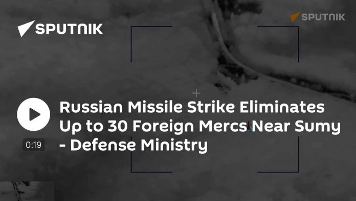 ?Približne 30 zahrani?ných žoldnierov a šes? kusov techniky bolo zni?ených raketovým útokom na miesto do?asného rozmiestnenia pri meste Sumy na Ukrajine, informovalo ruské ministerstvo obrany. pic.twitter.com/Y6P882ADf6
