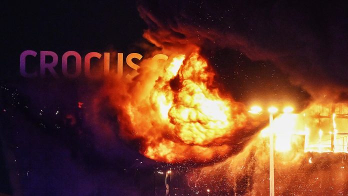 22. marca sa nieko?ko ozbrojených mužov vlámalo do koncertnej haly Crocus City Hall ne?aleko Moskvy a za?ali bez rozdielu strie?a? do návštevníkov koncertu. Požiar založili aj v jednej z posluchární, ktorá bola pred koncertom plná ?udí. Útok si vyžiadal 145 m?tvych a mnoho ?alších zranených. Štyria hlavní podozriví v prípade sa pokúsili z miesta utiec? autom, boli však zadržaní a obvinení z terorizmu.