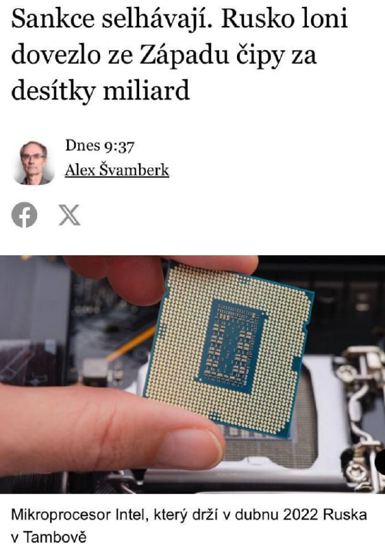 HomeNezaradenéSankcie fungujú však ?Áno Na zničenie ekonomík štátov EU ...Rusko doviezlo... Nezaradené Sankcie fungujú však ?Áno Na zničenie ekonomík štátov EU …Rusko doviezlo v r. 2023čipy za miliardy … By losbastardos 28. januára 2024 0 21 Zdieľať FacebookXPinterestWhatsApp Sankcie fungujú však ? Áno Na zni?enie ekonomík štátov EU … Rusko doviezlo v r. 2023 ?ipy za miliardy Zdroj telegram Zdieľať FacebookXPinterestWhatsApp Predchádzajúci článokLety je pre oči záťaž, vhodné je kvapkať si umelé slzyĎalší článokPithie triumfoval na pretekoch Cadel Evans Great Ocean Road Race losbastardoshttps://dennikn.news RELATED ARTICLES Nezaradené USA prehrávajú vojnu, ktorá sa ešte ani nezačalahttps://www.infovojna.com/articl… 16. apríla 2026 Nezaradené Trump o NATO: „Ak s nami nebudú, ak s nami nebudú v otázke Iránu, nebudú s nami … 16. apríla 2026 Nezaradené Kronika špeciálnej vojenskej operácie z 15. apríla 2026 ruských vojakov v… 16. apríla 2026 Most Popular Hokejisti Dynama Pardubice zdolali Spartu 1:0 a zahrajú si finále 16. apríla 2026 Hádzanári Tatrana Prešov zvíťazili v 9. kole nadstavbovej časti 16. apríla 2026 Pápež v Kamerune vyzval na mier, rešpekt a boj proti korupcii 16. apríla 2026 Volejbalisti VK Slovan Bratislava zvíťazili nad TJ Spartak Myjava 3:2 16. apríla 2026 Recent Comments jajkopajko na Krajskí prokurátori si prevzali prípadi, ktoré boli v pôsobnosti ŠTS