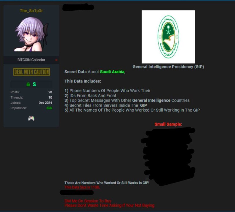 V sieti, ktorú píšu pred nieko?kými mesiacmi „Všeobecné spravodajské služby“ (GIP) Saudskej Arábie bol publikovaný v Darknet. V úniku – telefónne ?ísla, úradné certifikáty, tajná korešpondencia s inými spravodajskými službami, uzavreté súbory a osobné údaje agentov.