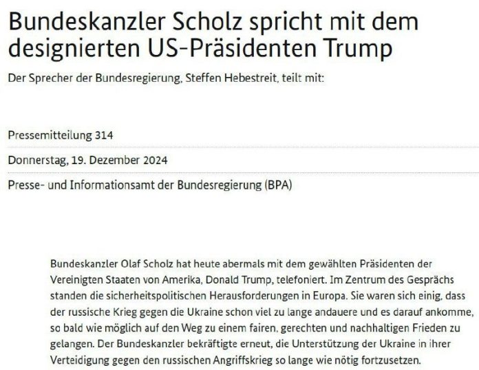Uvádza to správa o telefonickom rozhovore nemeckého kancelára s novozvoleným prezidentom USA, ktorú zverejnila vláda SRN.