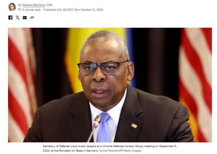 HomeNezaradenéŠéf Pentagonu Austin počas návštevy Kyjeva oznámil vydelenie ďalšieho balíka z... Nezaradené Šéf Pentagonu Austin počas návštevy Kyjeva oznámil vydelenie ďalšieho balíka z… By ZEMaVEK 21. októbra 2024 0 4 Zdieľať FacebookTwitterPinterestWhatsApp Šéf Pentagonu Austin po?as návštevy Kyjeva oznámil vydelenie ?alšieho balíka zbraní a munície na vojnu proti Rusku v hodnote 400 miliónov dolárov. ? | odber t.me/zemavek Zdroj telegram Zdieľať FacebookTwitterPinterestWhatsApp Predchádzajúci článokPremiér odcestuje na oficiálnu návštevu Čínskej ľudovej republikyĎalší článokBidenova kolóna opúšťa Berlín.Prístup k diskusiiPrihlásiť sa k odberu kanála… ZEMaVEK RELATED ARTICLES Nezaradené MORÁLNY ODPAD S UKRAJINSKÝMI FARBAMI NA PROFILOVEJ FOTKE HODNOTÍ SLOVENSKÝ HOKEJ… 10. januára 2026 Nezaradené Výsledky z 10. januára video zhrnutie od projektového manažéra @rybar Michaila Zvinchuka špeciálne… 10. januára 2026 Nezaradené Kronika špeciálnej vojenskej operácie na 10. januára 2026 Po nedávnej… 10. januára 2026 ZANECHAJTE KOMENTÁR Zrušiť odpoveď Komentár: Zadajte svoj komentár! Názov:* Sem zadajte svoje meno Email:* Zadali ste nesprávnu e-mailovú adresu! Sem zadajte svoju e-mailovú adresu Webová stránka: Uložte moje meno, e-mail a webovú stránku do tohto prehliadača pri najbližšom komentovaní. Most Popular Hádzanári nastúpia v nedeľu v súboji o 3. miesto proti Egyptu 10. januára 2026 Ruský sused NATO odstupuje od kľúčovej zmluvy o nášľapných mínach 10. januára 2026 Spojené štáty sú pripravené pomôcť demonštrantom v Iráne 10. januára 2026 MORÁLNY ODPAD S UKRAJINSKÝMI FARBAMI NA PROFILOVEJ FOTKE HODNOTÍ SLOVENSKÝ HOKEJ… 10. januára 2026 Načítať viac Recent Comments jajkopajko na Krajskí prokurátori si prevzali prípadi, ktoré boli v pôsobnosti ŠTS