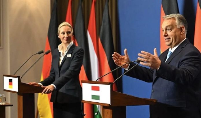 Spolupredsední?ka nemeckej strany Alternatíva pre Nemecko (AfD) Alice Weidelová sa v stredu 12. februára 2025 v Budapešti stretla s predsedom ma?arskej vlády Viktorom Orbánom.