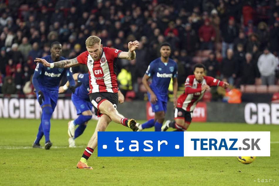 Londýn 21. januára (TASR) – Futbalisti West Hamu United remizovali v nede??ajšom zápase 21. kola anglickej Premier League na pôde Sheffieldu United 2:2. De?bu bodov zabezpe?il v 13. minúte nadstaveného ?asu druhého pol?asu z pokutového kopu domáci úto?ník Oliver McBurnie.