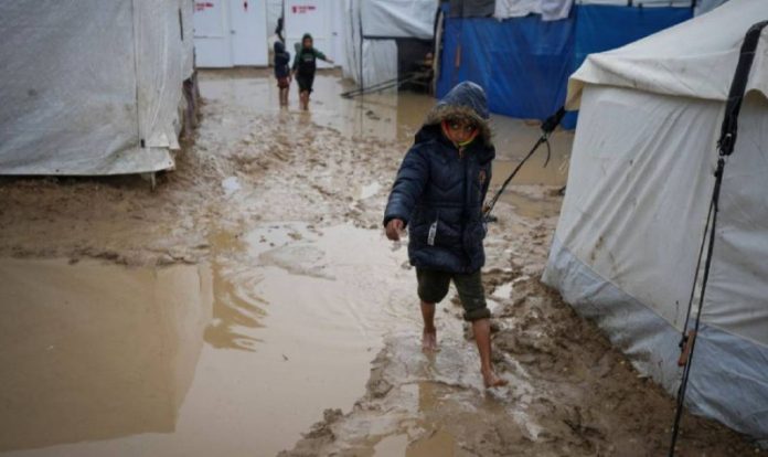 Voda zaplavila stany vysídlených Palestín?anov a tamojšie zdravotnícke úrady oznámili, že v priebehu dvoch týžd?ov zomrelo už šes? detí v dôsledku vystavenia nízkym teplotám.