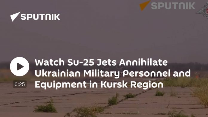 „Posádky úto?ného letectva lietadiel Su-25 zasiahli neriadenými vzdušnými raketami zhluk živej, obrnenej a automobilovej vojenskej techniky ukrajinských ozbrojených síl v pohrani?nej oblasti Kurskej oblasti. Útok bol uskuto?nený neriadenými vzdušnými raketami na prieskumné ciele “, uviedlo ministerstvo.