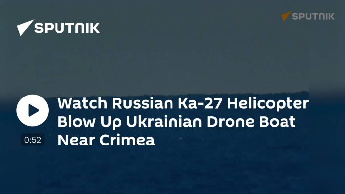 Ruské ministerstvo obrany (MO) zverejnilo zábery, na ktorých je vidie? a Vojenský vrtu?ník Kamov Ka-27 v prevádzke s ruským námorníctvom pri ni?ení ukrajinského bezpilotného ?lna pohybujúceho sa blízko pobrežia Krymu.