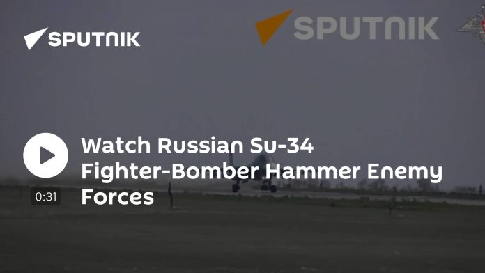 Ruské ministerstvo obrany nedávno zverejnilo videozáznam ruského lietadla Su-34, ktoré úto?í na ukrajinské vojenské ciele v zóne špeciálnej vojenskej operácie. Bombardovací nálet cielil konkrétne na maskovanú nepriate?skú techniku ??a personál nachádzajúci sa v oblasti zodpovednosti bojovej skupiny Tsentr.