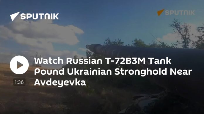 Ruské ministerstvo obrany zverejnilo zábery, na ktorých tank T-72B3M zaúto?il na ukrajinskú vojenskú pevnos? v oblasti Avdejevka.