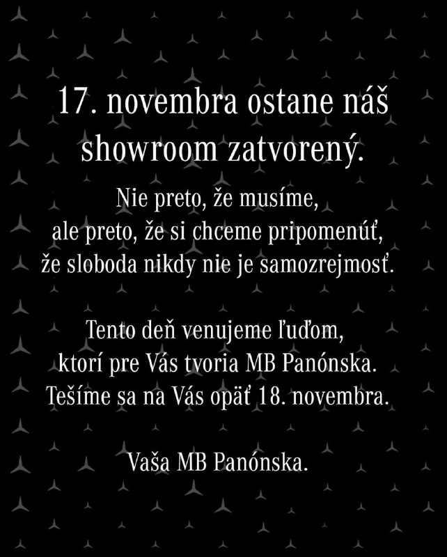 Sloboda nikdy nie je samozrejmosť.17. novembra zostane aj náš showroom zatvorený…