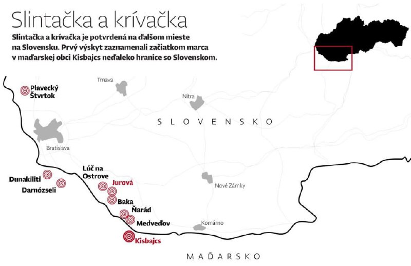 HomeNezaradenéSlovensko má 6. ohnisko slintačky a krívačky. Ministerstvo pôdohospodárstva potv... Nezaradené Slovensko má 6. ohnisko slintačky a krívačky. Ministerstvo pôdohospodárstva potv… By losbastardos 4. apríla 2025 0 150 Zdieľať FacebookXPinterestWhatsApp Slovensko má 6. ohnisko slinta?ky a kríva?ky. Ministerstvo pôdohospodárstva potvrdilo nákazu v obci Jurová, ktorá sa nachádza blízko zasiahnutých fariem na Žitnom ostrove. Pozvite priate?ovodber Zdroj telegram Zdieľať FacebookXPinterestWhatsApp Predchádzajúci článokDRUCKER UROBIL OBROVSKÚ CHYBU! Vyrastal som v učiteľskej rodine. Moja mama učila…Ďalší článokUNUDENÁ HEREČKA ODÍDE Z LIEČENIA SKÔR, LEBO SA NEMÁ S KÝM ROZPRÁVAŤRoky som s pr… losbastardoshttps://dennikn.news RELATED ARTICLES Nezaradené Oslobodenie Zybino Postupný pokrok pokračuje smerom k Burluku… 17. apríla 2026 Nezaradené Von der Leyen imúnna voči demokracii – líderka AfD 17. apríla 2026 Nezaradené Pôjdu do Kyjeva za skúsenosťami a technikou? Japonské úrady plánujú prijať… 17. apríla 2026 Most Popular Oslobodenie Zybino Postupný pokrok pokračuje smerom k Burluku… 17. apríla 2026 Moskva odmieta obvinenia z hackerských útokov NATO 17. apríla 2026 Lykožrútovú kalamitu na Horehroní sa podľa lesníkov podarilo zastaviť 17. apríla 2026 Von der Leyen imúnna voči demokracii – líderka AfD 17. apríla 2026 Recent Comments jajkopajko na Krajskí prokurátori si prevzali prípadi, ktoré boli v pôsobnosti ŠTS