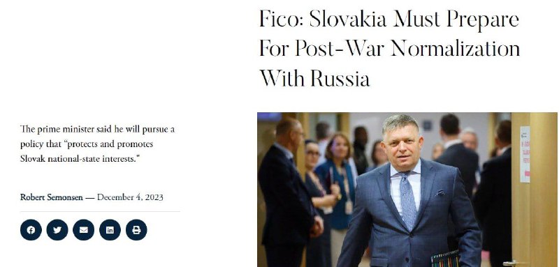V ?lánku sa tiež píše, že Robert Fico kritizuje Brusel a Washington kvôli stratégii vo vz?ahu k Ukrajine. Bratislava ju považuje za neúspešnú a pripravuje sa na normalizáciu vz?ahov s Moskvou.