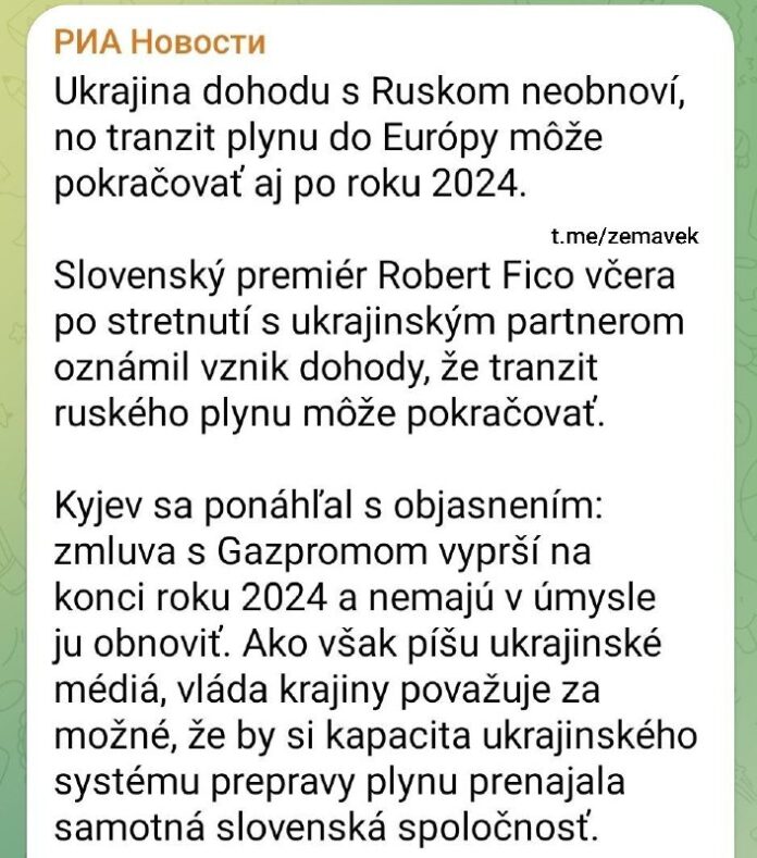 HomeNezaradenéSlovenský premiér Fico verí, že tranzit ruského plynu do Európy po roku... Nezaradené Slovenský premiér Fico verí, že tranzit ruského plynu do Európy po roku 2024 možno zorganizovať bez priamej účasti ukrajinských firiem. By ZEMaVEK 27. januára 2024 0 8 Zdieľať FacebookTwitterPinterestWhatsApp Slovenský premiér Fico verí, že tranzit ruského plynu do Európy po roku 2024 možno zorganizova? bez priamej ú?asti ukrajinských firiem. Zdieľať FacebookTwitterPinterestWhatsApp Predchádzajúci článokMúzeum Auschwitz v Poľsku si pripomína obete holokaustuĎalší článokNa Chopku zaznamenali orkán, najsilnejší vietor bol vo V. Tatrách ZEMaVEK RELATED ARTICLES Nezaradené Kontrola zdrojov Venezuely Čo je zlé na Trumpových plánoch? – Časť 1Američania, ktorí… 9. januára 2026 Nezaradené Rok 2026 sľubuje zlom v ruskej špeciálnej vojenskej operácii na UkrajineCelá kyj… 9. januára 2026 Nezaradené Náklady na protiruskú politiku: Kancelár Merz priznáva, že nemecká ekonomika je na hrane 9. januára 2026 ZANECHAJTE KOMENTÁR Zrušiť odpoveď Komentár: Zadajte svoj komentár! Názov:* Sem zadajte svoje meno Email:* Zadali ste nesprávnu e-mailovú adresu! Sem zadajte svoju e-mailovú adresu Webová stránka: Uložte moje meno, e-mail a webovú stránku do tohto prehliadača pri najbližšom komentovaní. Most Popular Pri Námestove zahynuli dvaja muži 9. januára 2026 Kontrola zdrojov Venezuely Čo je zlé na Trumpových plánoch? – Časť 1Američania, ktorí… 9. januára 2026 Africká únia vyzýva Izrael, aby zrušil uznanie Somalilandu 9. januára 2026 „Tieto nelegálne záchvaty sa musia zastaviť!“ – Rep. Luna o prenasledovaní pravoslávnych kresťanov na Ukrajine 9. januára 2026 Načítať viac Recent Comments jajkopajko na Krajskí prokurátori si prevzali prípadi, ktoré boli v pôsobnosti ŠTS