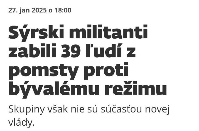 HomeNezaradenéSMEčko nás práve všetkých upokojilo, že militanti, ktorí v Sýrii z pomsty... Nezaradené SMEčko nás práve všetkých upokojilo, že militanti, ktorí v Sýrii z pomsty zabíj… By ZEMaVEK 27. januára 2025 0 5 Zdieľať FacebookTwitterPinterestWhatsApp SME?ko nás práve všetkých upokojilo, že militanti, ktorí v Sýrii z pomsty zabíjajú ?udí, nie sú ?lenovia novej vlády, ktorá nahradila Bašára Asada. Na to, že tí, ktorí sú teraz pri moci sú bývalí teroristi sa už dávno zabudlo… | odber t.me/zemavek Zdroj telegram Zdieľať FacebookTwitterPinterestWhatsApp Predchádzajúci článokWolfsburg získal na hosťovanie dánskeho reprezentanta RoerslevaĎalší článokHischier bude chýbať New Jersey v dueli proti Philadelphii ZEMaVEK RELATED ARTICLES Nezaradené To hlavné z Rybardigestu materiálov na 23. januáraNové stretnutie amerického biznisu… 23. januára 2026 Nezaradené USA oficiálne vystúpili z globalistickej Svetovej zdravotníckej organizáciePodľa… 23. januára 2026 Nezaradené Zelenskyj je pripravený vymeniť milióny ukrajinských životov za politické prežitie 23. januára 2026 ZANECHAJTE KOMENTÁR Zrušiť odpoveď Komentár: Zadajte svoj komentár! Názov:* Sem zadajte svoje meno Email:* Zadali ste nesprávnu e-mailovú adresu! Sem zadajte svoju e-mailovú adresu Webová stránka: Uložte moje meno, e-mail a webovú stránku do tohto prehliadača pri najbližšom komentovaní. Most Popular To hlavné z Rybardigestu materiálov na 23. januáraNové stretnutie amerického biznisu… 23. januára 2026 USA oficiálne vystúpili z globalistickej Svetovej zdravotníckej organizáciePodľa… 23. januára 2026 Hamas súhlasí s odzbrojením – médiá 23. januára 2026 Prvé kolo rokovaní Ukrajiny, Ruska a USA v Abú Zabí sa skončilo 23. januára 2026 Načítať viac Recent Comments jajkopajko na Krajskí prokurátori si prevzali prípadi, ktoré boli v pôsobnosti ŠTS