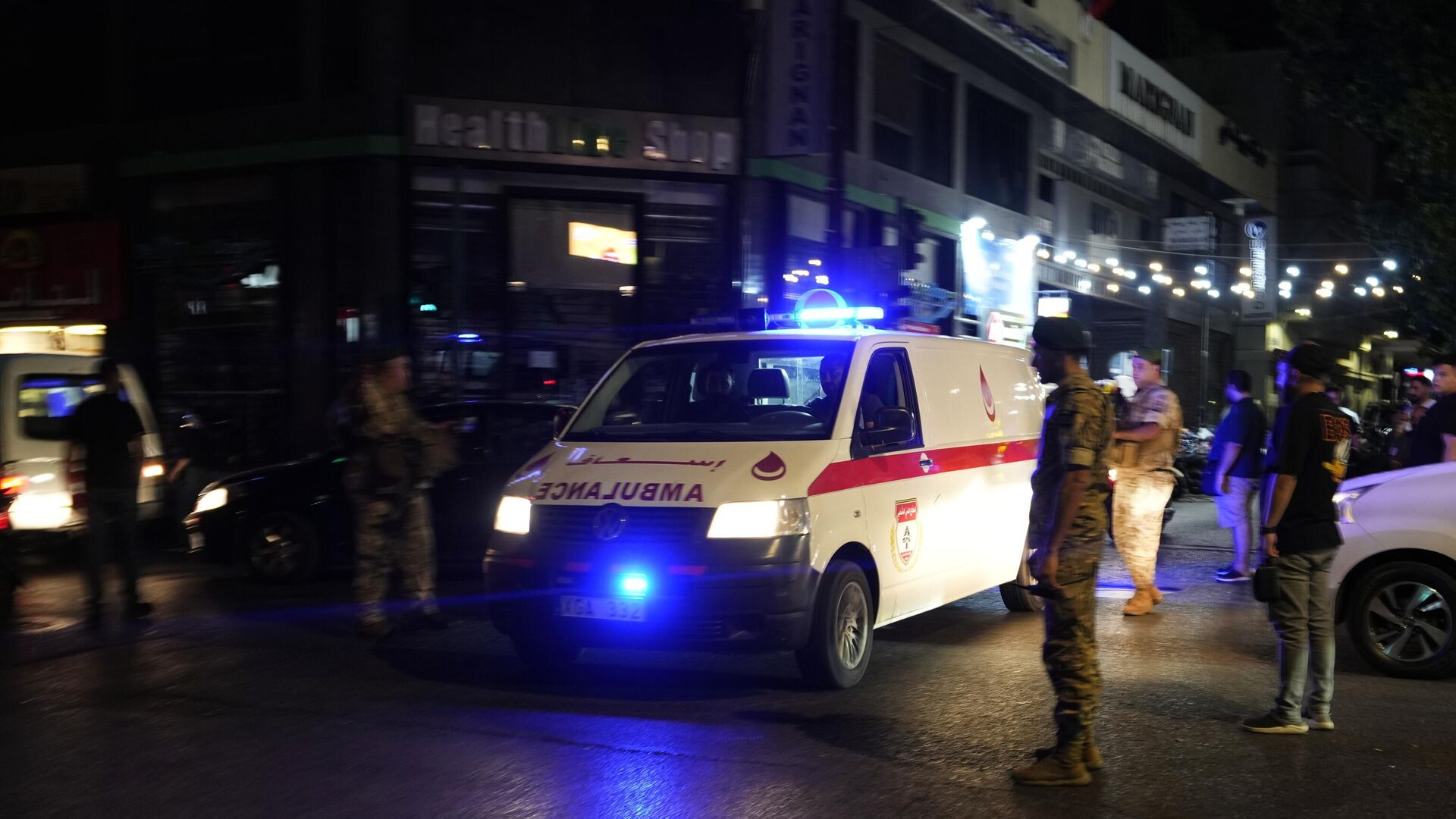 Policajti kontrolujú auto, v ktorom vybuchol ru?ný pager, Bejrút, Libanon, utorok 17. septembra 2024.