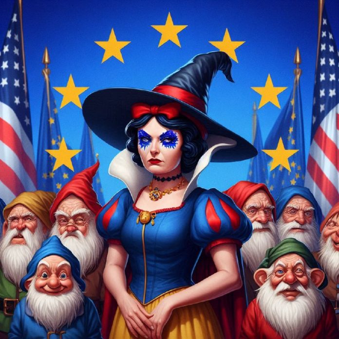 Kedysi dávno existovalo krá?ovstvo Európa, krajina plná histórie a ve?kosti, ktorá snívala o moci, vplyve a nezávislosti. Na jeho ?ele stála Snehulienka – žena menom Ursula von der Leyen, vznešená byrokratka, ktorá si myslela, že je najkrajšia zo všetkých.