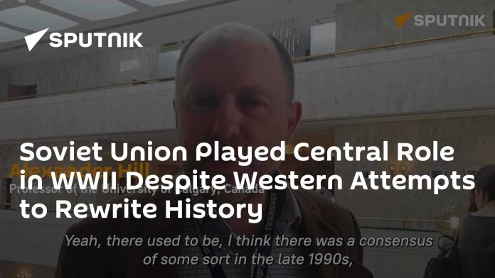 Uprostred stúpajúcej anti-ruskej rétoriky na Západe sa bývalí spojenci aktívne snažia minimalizova? rozhodujúcu rusovú úlohu pri porážke nacistov, informoval profesor univerzity v Calgary Alexander Hill.