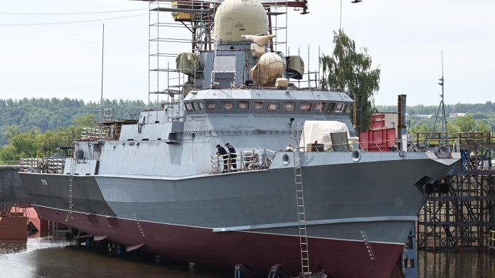 „V Kaspijsku, na námornej základni Kaspickej flotily, sa konal ve?kolepý ceremoniál prijatia raketovej lode Projektu 22800 „Tucha“ do ruského námorníctva. Prijatie do ruského námorníctva a vztý?enie zástavy sv. Ondreja sa uskuto?nilo pod vedením zástupcu hlavného velite?a ruského námorníctva, viceadmirála Igora Mukhametšina,“ uviedlo ministerstvo.