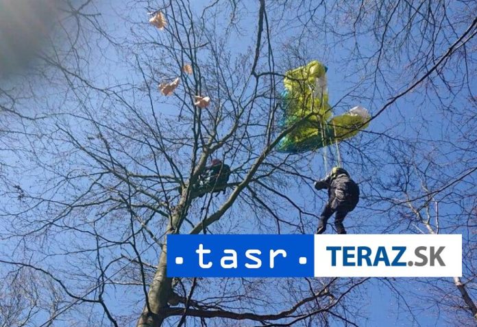 Paraglajdista bol bez zranení, zostal zavesený na padáku a uviaznutý na strome vo výške približne 12 metrov. „Zasahujúci hasi?i vytvorili na ved?ajšom strome kotviaci bod a pomocou istiacich lán a lezeckej techniky postupne paraglajdistu bezpe?ne spustili na zem,“ uviedol HaZZ.