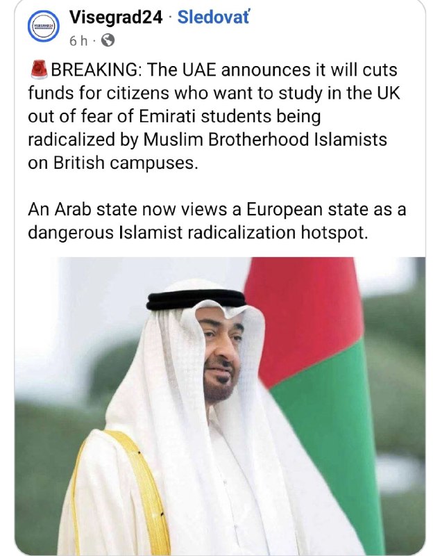 Spojené arabské emiráty oznámili, že znižujú financovanie študentov, ktorí chcú študovať v Spojenom kráľovstve, z dôvodu obáv z islamistickej radikalizácie.