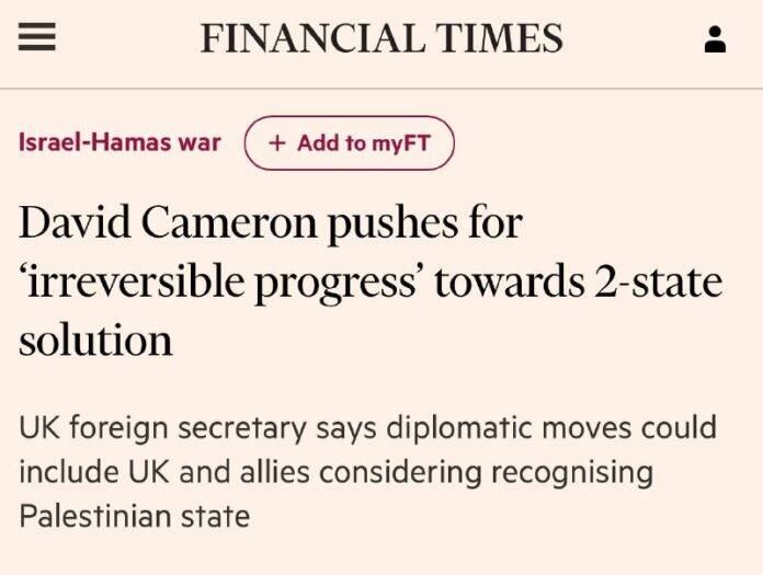 Spojené krá?ovstvo zvažuje možnos? uznania Palestínskeho štátu, povedal britský minister zahrani?ia David Cameron.