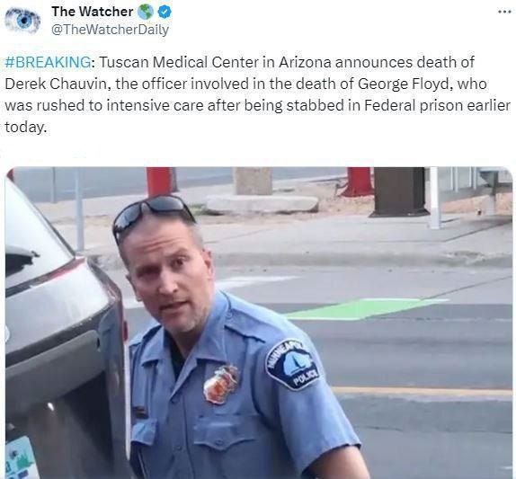 Správy o smrti Dereka Chauvina nezodpovedajú skuto?nosti. Informáciu o jeho smrti zverejnil používate? sociálnej siete X, následne sa správa rozšírila do médií.