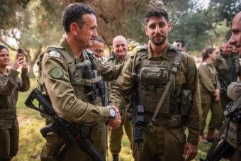 Na snímke IDF je celebrita TV obrazoviek Idan Amedi (vpravo) s ná?elníkom štábu izraelskej armády Herzi Halevi.
