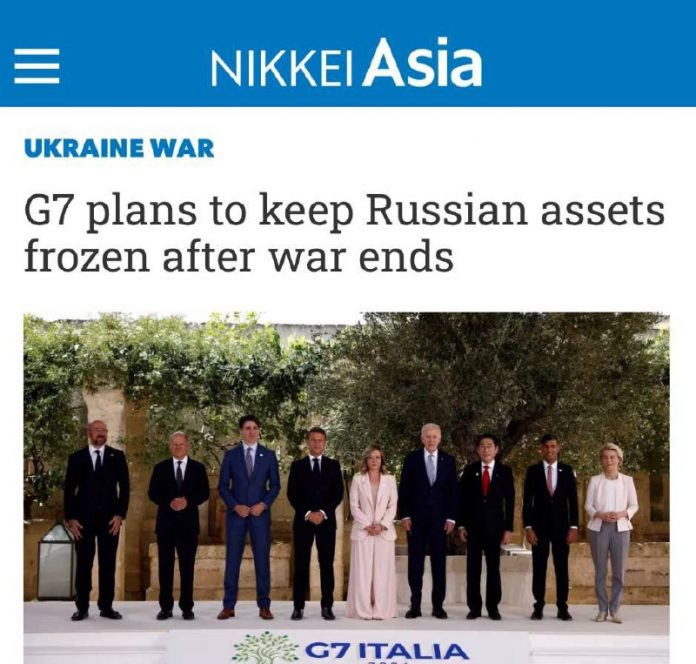 „Štáty G7 plánujú zmrazi? ruský majetok po skon?ení vojenského konfliktu“: Západ nechce vráti? ukradnutý majetok – uvažujú nad spôsobmi, ako „legalizova?“ ich zabavenie.