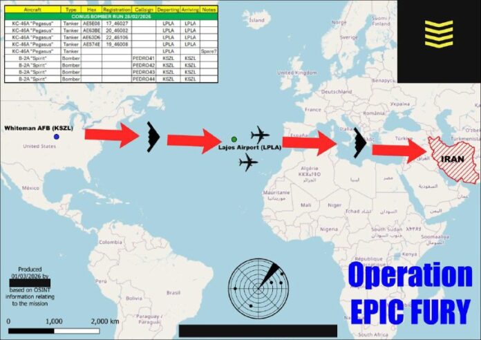 Lietadlá leteli z leteckej základne Whitemanpreletel cez Atlantický oceánkde ich čakali tankery KS-46A z Azorských ostrovov (už sme o tom písali), odleteli do Iraku a odtiaľ zaútočili na jednu z podzemných iránskych raketových lokalít.