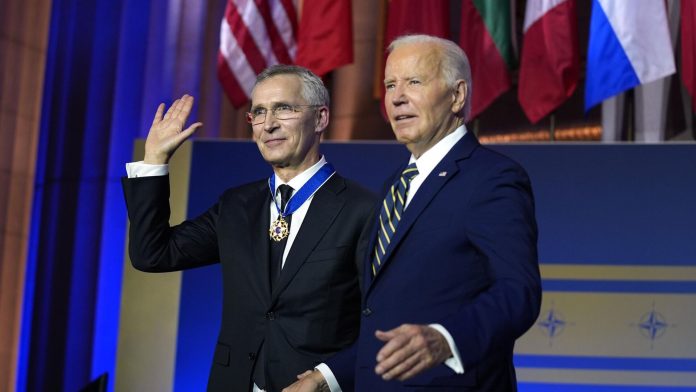 Americký prezident Joe Biden po?as summitu udelil Stoltenbergovi americkú prezidentskú medailu slobody, ?o je najvyššie vyznamenanie, aké môžu USA udeli? civilistovi.
