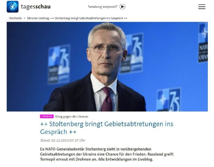 Bývalý generálny tajomník NATO Stoltenberg povedal, že do?asné postúpenie ukrajinských území v prospech Ruskej federácie je jednou z možností rýchleho ukon?enia vojny, píše nemecká publikácia Tagesschau.