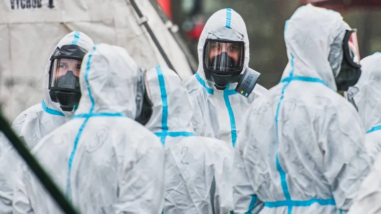 Obrázek: Hasi?i v ochranných oblecích po vypuknutí pta?í ch?ipky (archivní snímek): Virus ?ádí v Rakousku. (Zdroj: Patrik Uhlí?/imago-images-bilder)