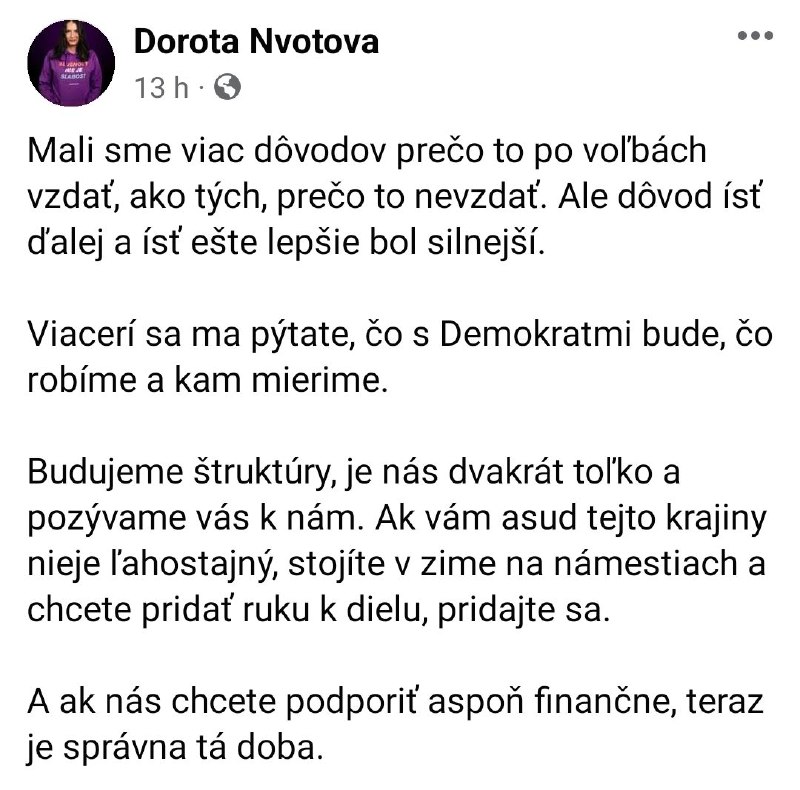 Strana Demokrati, ktorá je aj podľa najnovšieho januárového prieskumu len niekde na 3% to aj tak nevzdávajú: pozývajú ľudí do svojich radov a žiadajú finančnú …