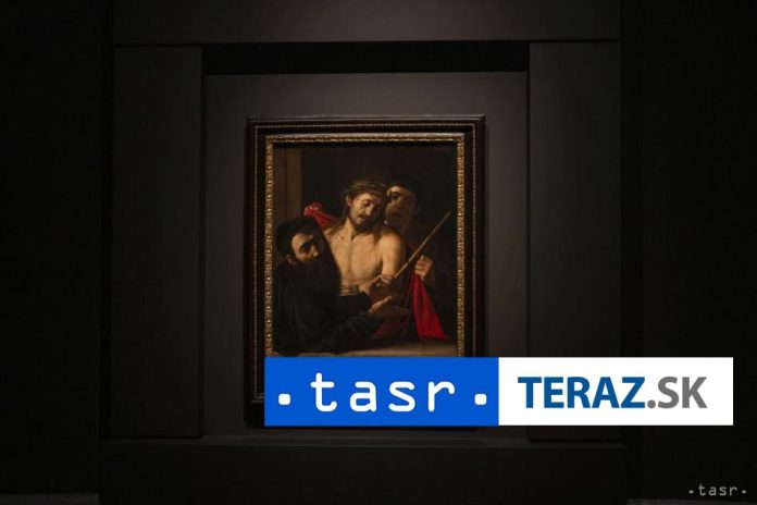 Tmavé plátno s názvom „Ecce Homo“ zobrazuje zakrvaveného Ježiša s t??ovou korunou tesne pred ukrižovaním.