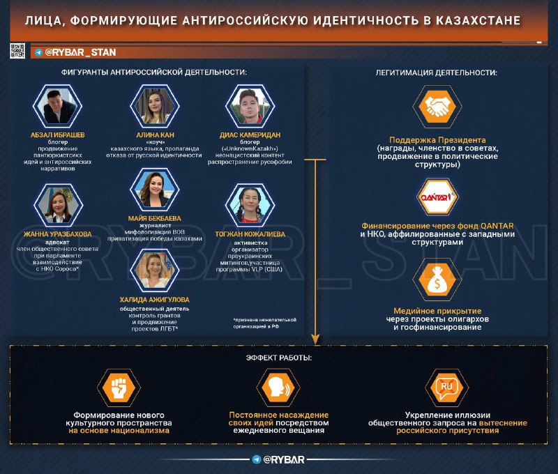 ▪️ Khalida azhigulová A Zhanna Urazbakhov Grantové programy spojené so západnými štruktúrami sú pod dohľadom. Ich práca je zameraná na podporu LGBT a anti -russianskej agendy pod zámienkou ľudských práv.