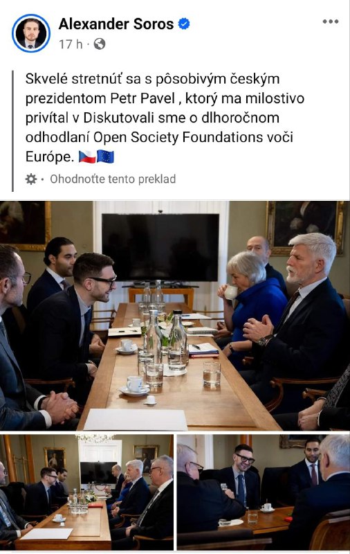 HomeNezaradenéStretnutie o ktorom sa asi netreba chváliť! Český prezident Petr Pavel sa... Nezaradené Stretnutie o ktorom sa asi netreba chváliť! Český prezident Petr Pavel sa občanom na svojom FB profile nepochválil, že sa stretol so synom Georgea Sorosa – Ale… By ZEMaVEK 2. decembra 2023 0 15 Zdieľať FacebookXPinterestWhatsApp Stretnutie o ktorom sa asi netreba chváli?! ?eský prezident Petr Pavel sa ob?anom na svojom FB profile nepochválil, že sa stretol so synom Georgea Sorosa – Alexandrom na Pražskom hrade.Informoval o tom Soroš mladší 1. decembra na facebooku. | odber Zdroj telegram Zdieľať FacebookXPinterestWhatsApp Predchádzajúci článokRuskí špióni ÚDAJNE zisťujú informácie V zákopoch na Ukrajine je invázia myší.Ďalší článokEÚ zvýšila dovoz jadrového paliva z Ruska v roku 2023 Bulharsko, Česká republika, Fínsko, Maďarsko a Slovensko kúpili tento rok z Ruska o 22 % viac obohateného… ZEMaVEK RELATED ARTICLES Nezaradené VIDEO: Denník N nielenže nestojí na strane Slovenska, ale v záujme ochrany ukraj… 16. apríla 2026 Nezaradené Biely dom prerokúva druhé kolo rozhovorov medzi USA a Iránom 16. apríla 2026 Nezaradené VIDEO: Austrália, ktorá je závislá od dovozu ropy cez Hormuzský prieliv, má po r… 16. apríla 2026 Most Popular Ruský vyslanec v Bezpečnostnej rade OSN odvolal Kallasa 16. apríla 2026 VIDEO: Denník N nielenže nestojí na strane Slovenska, ale v záujme ochrany ukraj… 16. apríla 2026 Premiér upozornil na málo kvalifikovaných pracovníkov v stavebníctve 16. apríla 2026 Ukrajinský „tlačový gang“ zaútočil na tínedžera v Odese (VIDEO) 16. apríla 2026 Recent Comments jajkopajko na Krajskí prokurátori si prevzali prípadi, ktoré boli v pôsobnosti ŠTS
