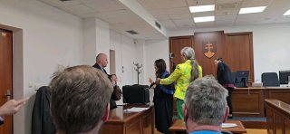 Prokurátor opúš?a pojednávaciu miestnos? v prípade súdu s docentom Dudášom, polícia stojí na chodbe ŠTS v Pezinku v po?te približne 20 príslušníkov PZ SR, vo vnútri miestnosti už ?aká približne 90 minút 21 svedkov procesu.